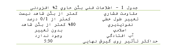 - اختلاط چند افزودنی مستلزم افزودن مجزای هر یک به مخلوط بتنی و با هماهنگی کامل با کارشناسان فنی می باشد.