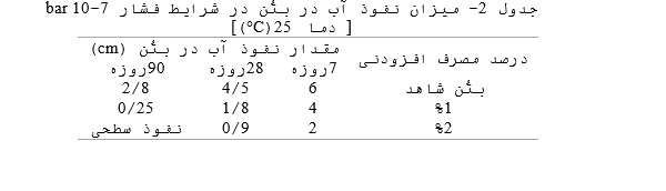 - 1 تا 2% درصد وزن سيمان در بتُن های ساخته شده با مصالح سنگی و شکسته بر حسب شرايط و موارد مصرف.