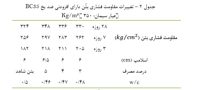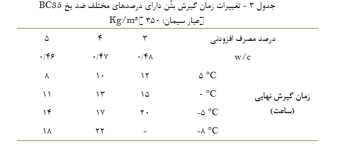 - كاهش نقطه انجماد آب اختلاط با افزایش حرارت بتن و ملات