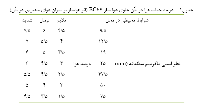 - هر چه زمان اختلاط بیشتر از مقدار استاندارد ذکر شده گردد از میزان حباب هوای بتن کم می شود