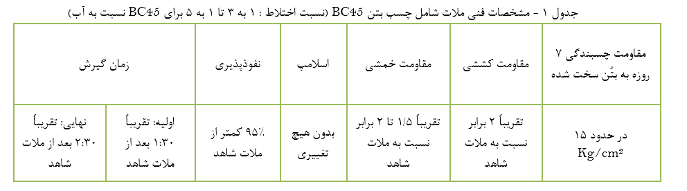 چسب بتن BC45 برای چسابدن بتن قدیم به بتن جدید و نیز افزایش چسبندگی ملات های ترمیمی کاربرد دارد. این نوع از چسب بتن توانایی افزایش دوام و سهولت عمل تعمیر و ترمیم بتن را دارد. نکته بسیار مهم این است که چسب بتن BC45 به درستی مورد استفاده قرار گیرد تا موجب افزایش نفوذناپذیری بتن و ملات گردد.